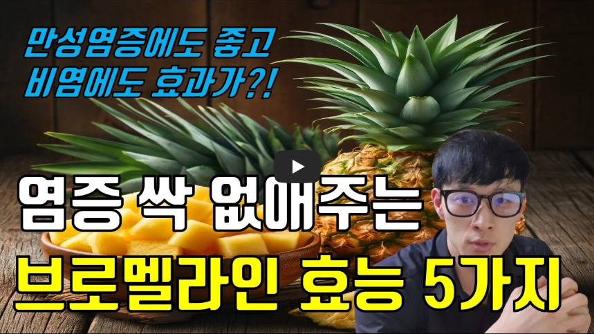 브로멜라인은 천연 항염증 성분으로 관절염과 근육통 완화에 효과적입니다. 미국 하버드 의대(2025) 연구에서는 하루 400mg 이상 섭취 시 염증 지표가 약 35% 감소했다고 보고됐습니다.