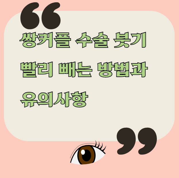 쌍꺼풀 수술을 했는데 부기가 빨리 안 빠져서 걱정이시죠? 쌍수를 하면 당분간은 외출도 못하고 붓기가 지속되면 수술이 잘못된 건 아닐까? 하는 걱정을 하기도 합니다. 이 글에서는 쌍수 붓기 빨리 빼는 핵심적인 방법을 공유해 드리겠습니다. 끝까지 읽어보시면 충분히 도움이 되실 겁니다.