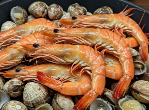 - 새우 및 해산물: 새우 85g당 약 35 mcg의 요오드를 제공합니다.