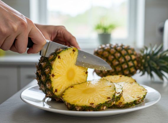 - 주의사항: 하루 1컵 정도의 파인애플 섭취는 안전하며 영양소 공급에도 좋습니다.