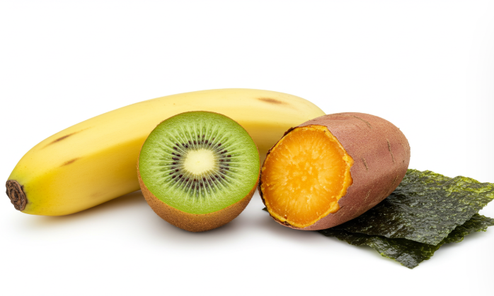 - 칼륨이 풍부한 바나나, 키위, 고구마, 미역, 다시마 등은 염분 배출에 도움을 줍니다.