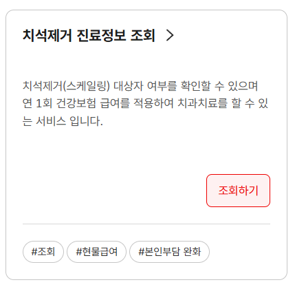 - 치석 제거 이력 및 급여 대상 여부 확인 가능